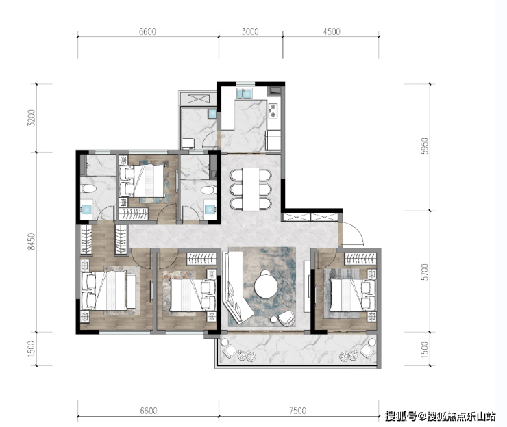 经典三房,动静分区,主卧套房设计,适合刚改家庭。