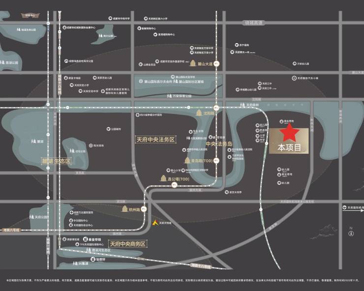 🔹三横三纵交通网路 上承高新下启总部商务区三横:麓山大道、沈阳路、武汉路三纵:利州大道、蓉遵高速、夔州大道北承高新区、南接天府新区CBD、东连东部新城的黄金比例区位立体式交通路网,东连成自泸高速,西接红星路南延线/天府大道,北临五环-麓山大道,陆路交通四通八达。