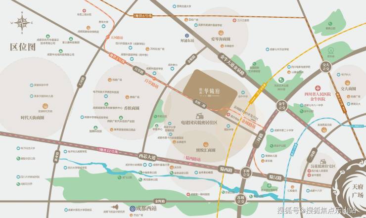 五大成熟商业氛围→2km内四大商场:中海国际购物公园、天府艺术公园、8万方天府111、山姆会员店。→4km内高端商业:15万方龙湖西宸天街、24万方金牛大悦城(在建)。