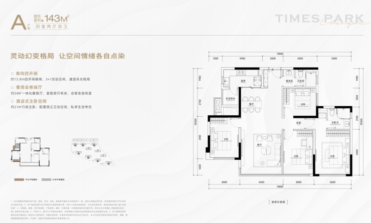 A户型/建面约143㎡四室两厅双卫