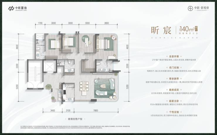 •爆款限量户型,仅此148席,118㎡四房三卫,140㎡超广角全景舱