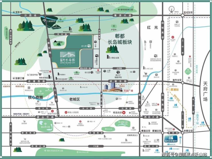 “四横四纵三轨道”的交通网络,通过老成灌路或成灌高速进入主城区仅需30min,1公里处的郫都站,便捷联通犀浦红光生活圈,社区巴士免费直达地铁6号线望丛祠站