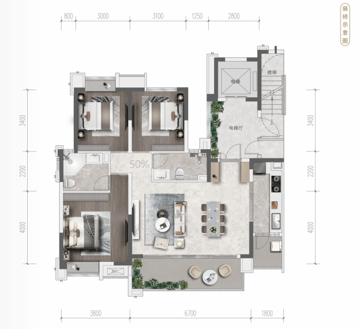 精装标准2970元/㎡,含新风+中央空调+地暖,物业为中海物业(3.7元/㎡/月)。