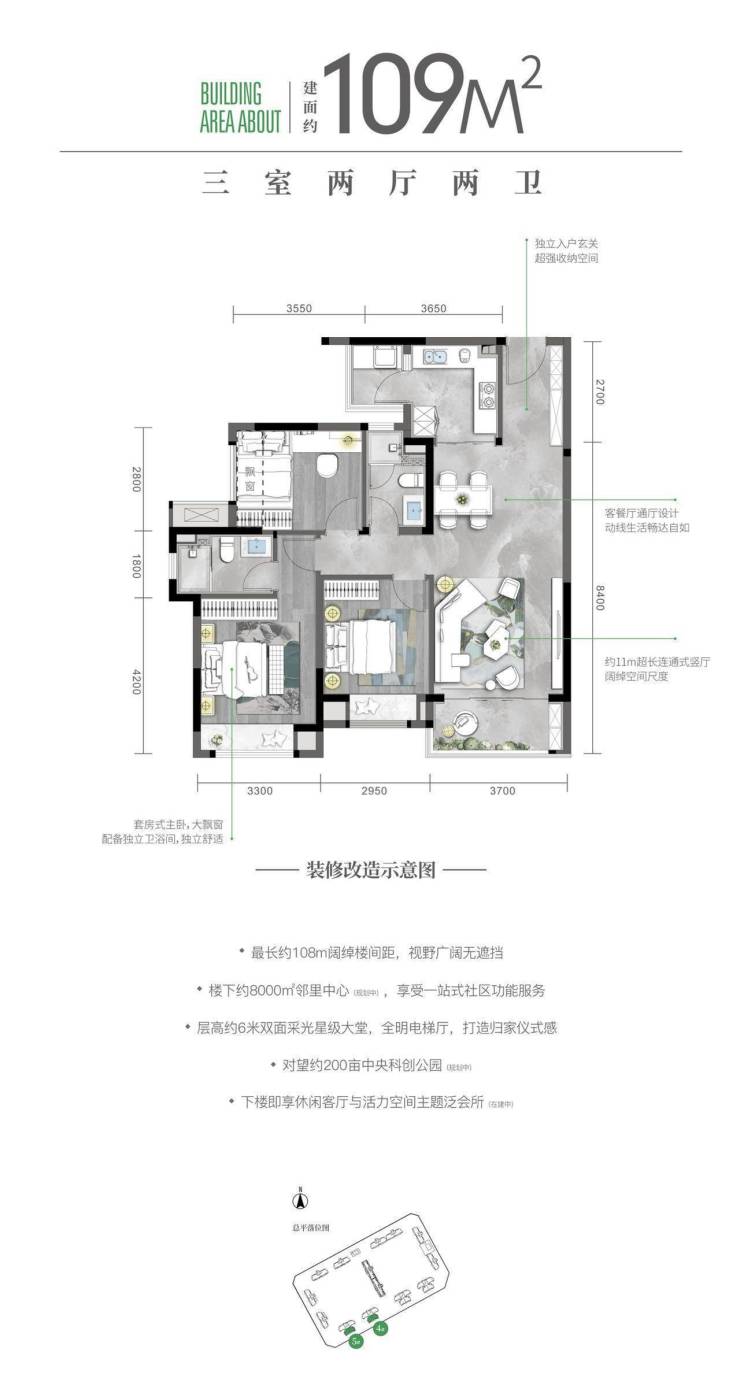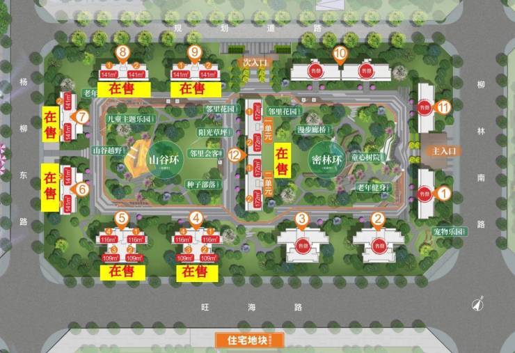 高层116㎡:超宽楼间距,户户超中庭,城西南北通透板式中庭三房(在售:9号地块2、3、4、5号楼)