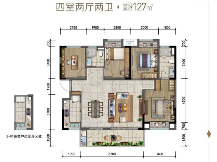 在售面积:96/105/118/127/129/141㎡