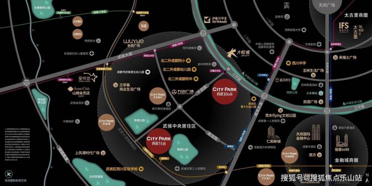 【商业配套】:大悦城、武侯万达、山姆会员、吾悦广场、龙湖星悦荟、永辉超市集聚【成都大悦城】,成都最好“逛”的商圈总建面约40万平方米,是国内首个体验游憩式潮玩购物公园,包括甲级精品写字楼、大型购物中心。主题街区三大部分,汇集吃、喝、玩、乐一体化休闲方式,是亲友聚会、日常购物的不二之选。