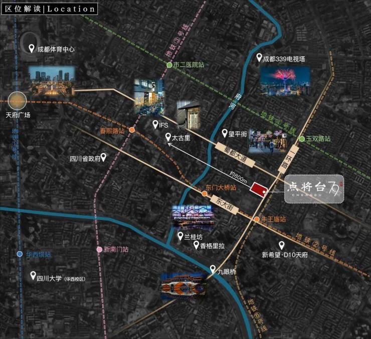 类别核心配套及距离顶流商圈春熙路(1km)|太古里(1km)|IFS(1.2km)文脉地标大慈寺(800m)|水井坊博物馆(1.5km)生态资源望江楼公园(2km)|人民公园(3km)名校环伺盐道街小学东区(1km)|七中育才(1.3km)