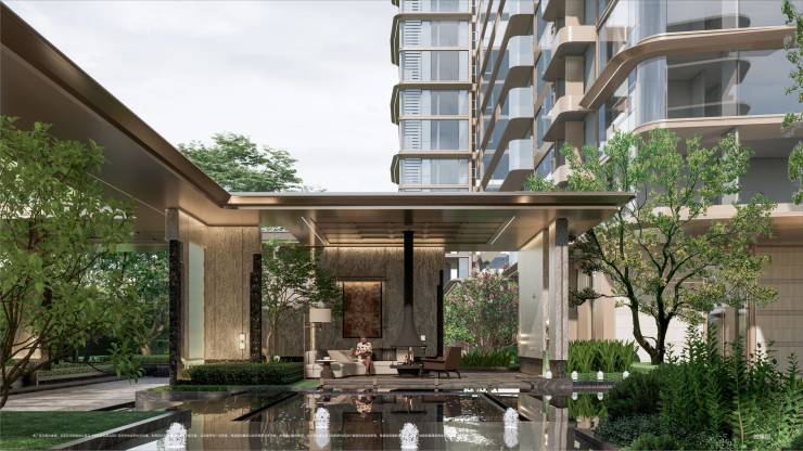 YKK系统门窗×曲面屏超流体设计×单栋最长约54米超长面宽×270°无柱全明转角×雕塑感立面灯光设计,共鸣世界豪宅美学。