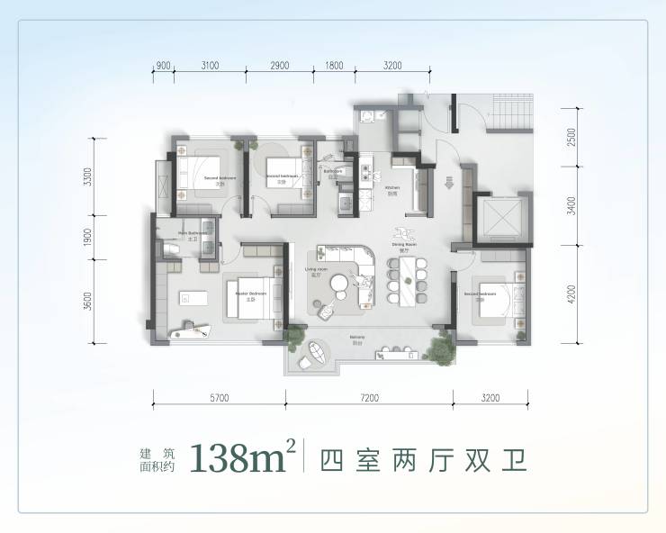 ▷沙龙派对系统:LDK一体化丨家庭观影区丨餐桌交流区丨阳光空中吧▷度假奢卧系统:度假式主卧丨三件套卫浴丨宽幕观景▷密友客房系统:独立客房丨隐私分区丨主客分离▷家庭平权系统:二孩平权丨镜像卧室丨亲密半径