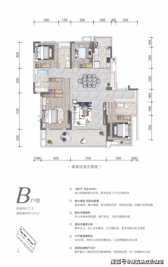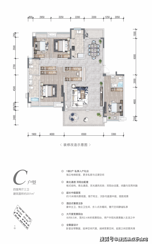 采用“一轴、四园、两巷+五进入户空间”体系,营造立体归家仪式感,园林层次丰富。