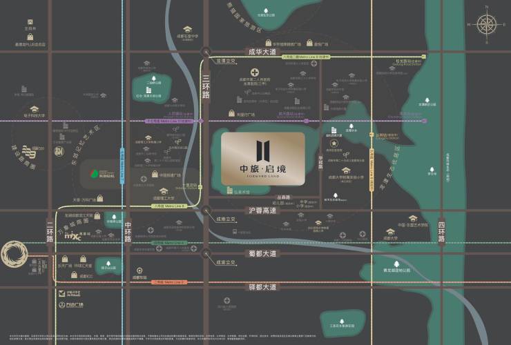 三横三纵路网:距三环路1.5公里,成华大道、沪蓉高速快速通达全城