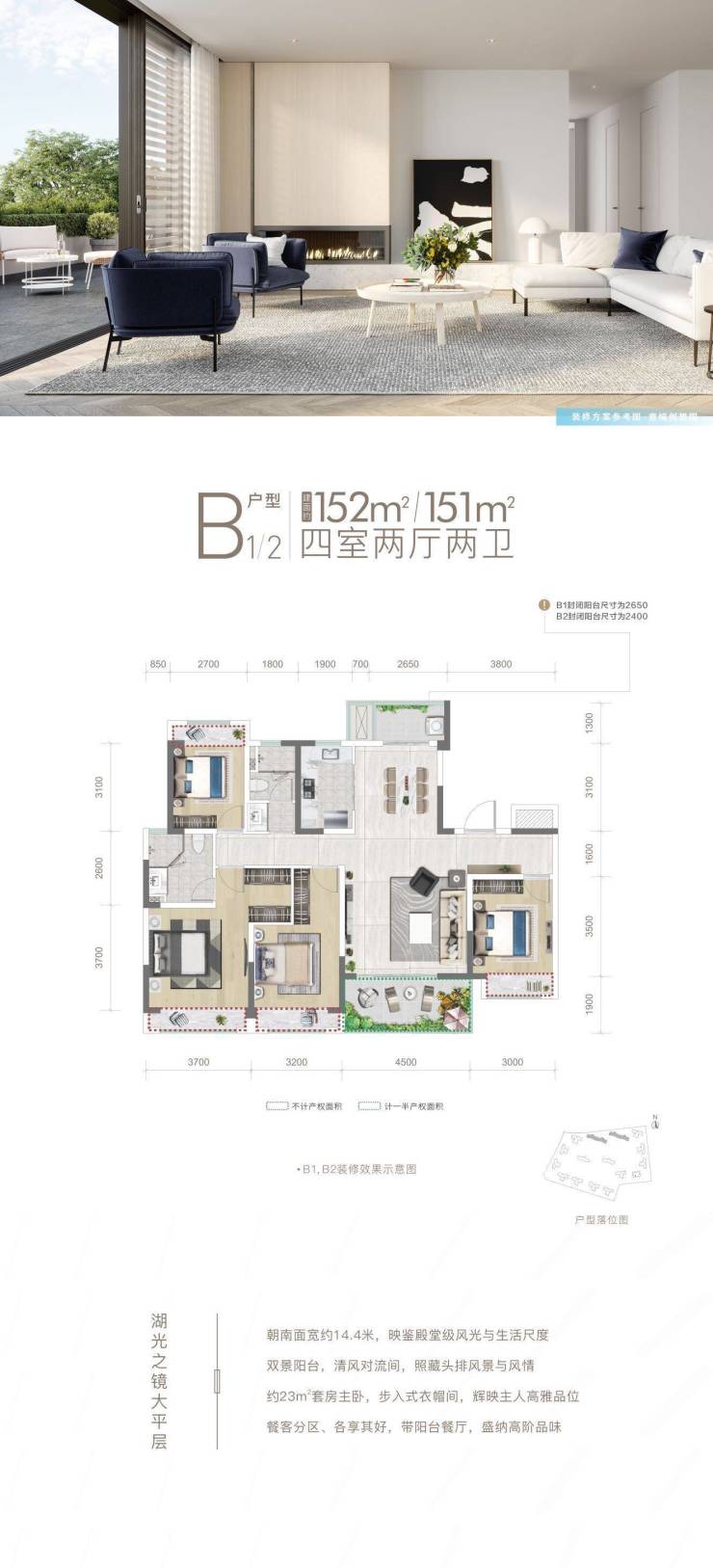 产品优势:建面109-165㎡精装现房,单价1.8-2.1万/㎡,2023年11月已交付