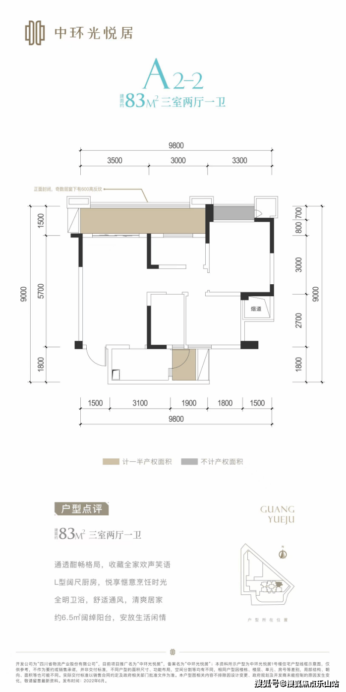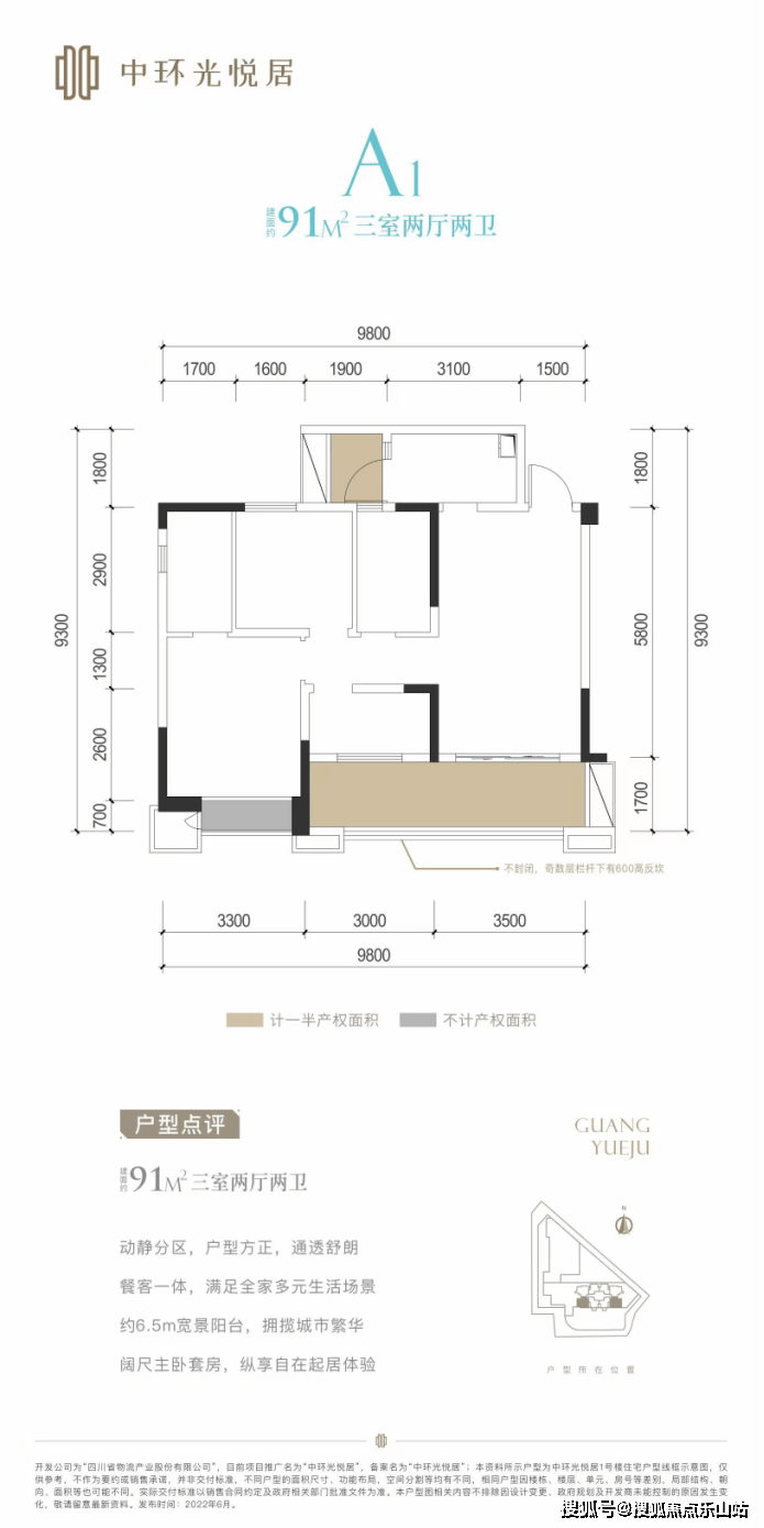 【项目基础信息】项目名称:中环光悦居,开发商:四川省物流产业股份有限公司,项目位置:四川省成都市成华区二仙桥东路60号,容积率:4.5,绿化率:20%,公摊:20%(赠送10%左右,得房率90%),车位数:365个,占地面积:10.58亩,梯户比:住宅3T8户,办公3T10户,总户数:住宅192户,办公80户,物业费:高层2.8元,办公4.2元,交房时间:2023年9月30日,产权年限:住宅70年,办公40年,物业公司:保利物业,产品面积段:62-73-83-91㎡,单价:2.1万左右
