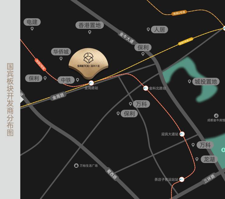 2015年伊始,万科、保利、城投、电建、人居、龙湖、香港置地、中铁等数家头部房企相继抢滩进驻,伴随地铁2号线通车、金牛大道升级等配套落地,国宾板块已从当年的“价值洼地”蜕变为“城西新封面”。