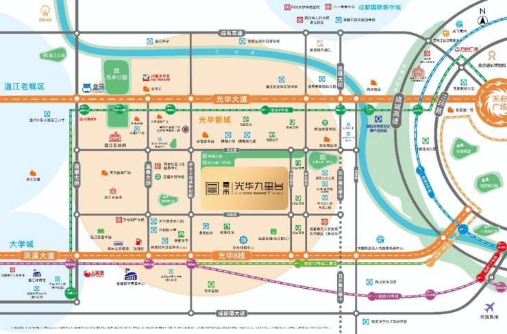 项目3公里内6所名校环伺;双城市主动脉(光华大道、光华8线)