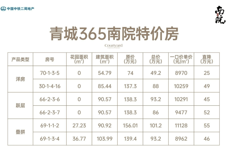 【品牌】中铁二局地产,匠心央企深耕区域23载,最懂青城山深耕青城山23载,先后打造了假日青城、青城365宅院、青城365南院一期,如今携青城365南院二期而来,为青城山打造全新一代文旅钜作