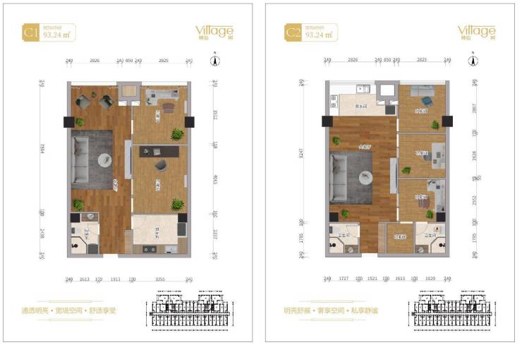 C1、C2户型 两套打通 两房单卫、三房双卫