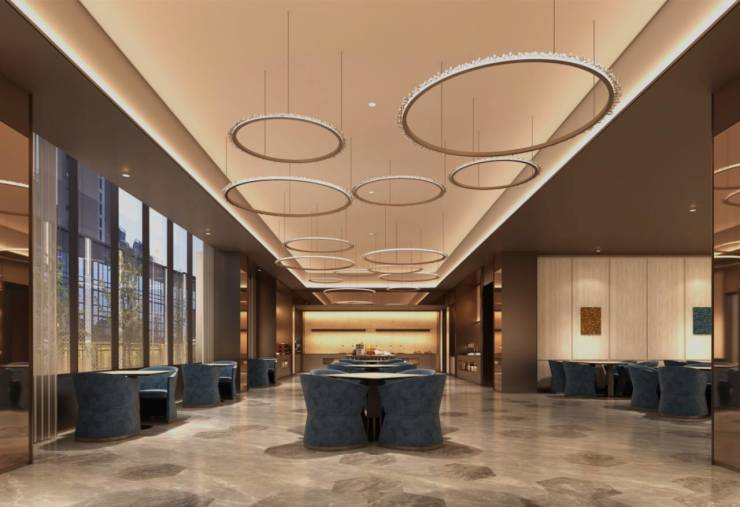 【空间效果图】:二层商业:二层商业包含社区入口、公共空间和星级酒店大堂!接待来客,仪式感满🈵,!回家的期待,松弛温暖!