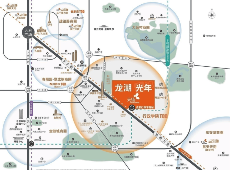 配套类别具体资源及距离交通枢纽地铁2号线行政学院站200米商业中心驿都天街(0米)|万达广场(1.5公里)生态资源青龙湖湿地公园(800米)产业引擎文创新经济产业园(1.2公里)