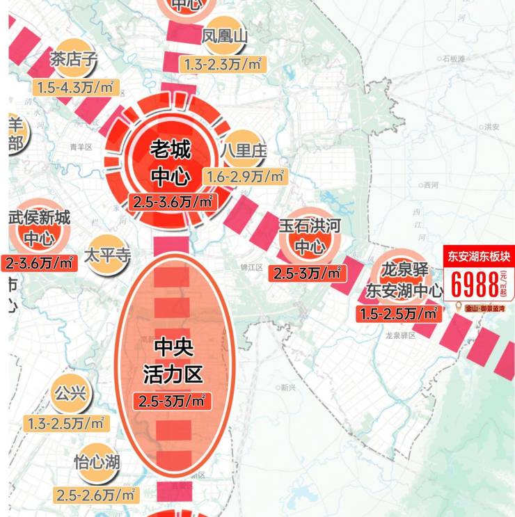 东进价值主轴——「蜀都大道」沿线板块价格对比
