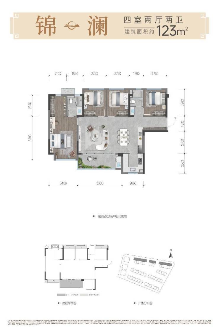 ✅锦澜丨建面约123㎡隐逸雅居丨四室两厅两卫