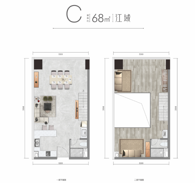47-68㎡小户设计,4.2米层高可隔双层,实得面积达70-100㎡;