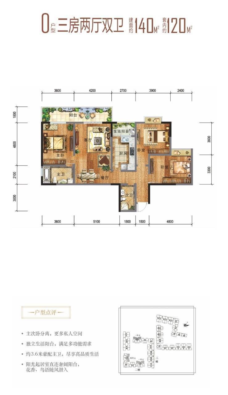 🌈面积区间:120-256㎡(主力户型122,128,140㎡套三双卫,128-256跃层)