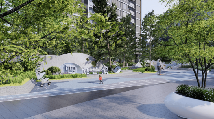点 / 根植于生活的社交公园在招商时代公园,参与建筑间生长的点状公园。首先,充分利用城市土地间的“金角银边”规划社交场景公园,让公园城市更具社交属性;其次,充分注重住宅及产业园区内的园林打造,让宅间公园根植于生活肌理。