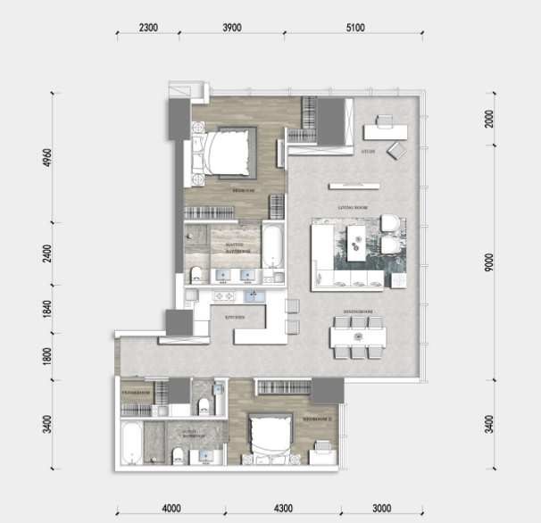 A10:173㎡(套二三卫)效果图