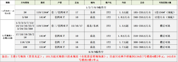 户型核心优势总价区间119㎡三房双卫+约6.2米南向阳台181万起141㎡四房双卫+双明卫+独立玄关约240万173㎡双套房+约7米横厅+多功能房约325万全系南北通透板楼,一楼全架空设计