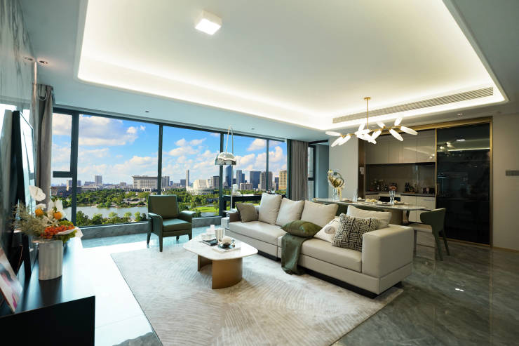 全横厅设计: 建面约121㎡起主力户型均采用大横厅设计(如121㎡约6.6米宽厅,140㎡约7米宽厅),空间尺度感优越。