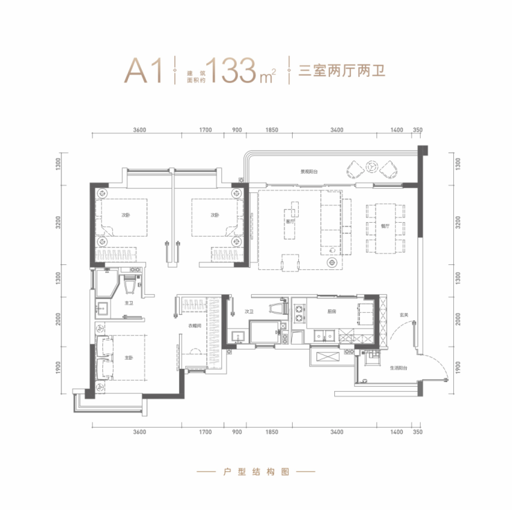 ☆A1 建筑面积约133㎡ 三室两厅两卫