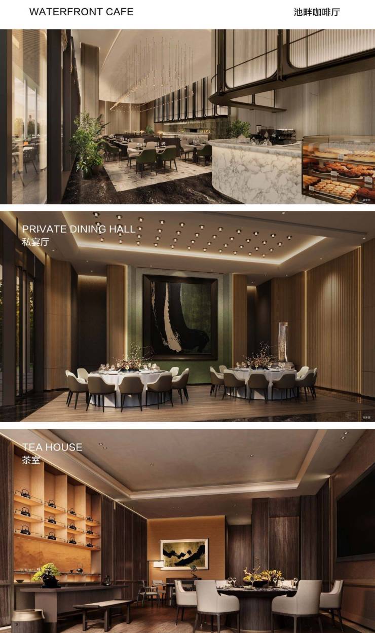 • 高端商业:湖畔茶事、蓝榭餐厅、咖啡图书馆、蔚蓝欢乐世界等