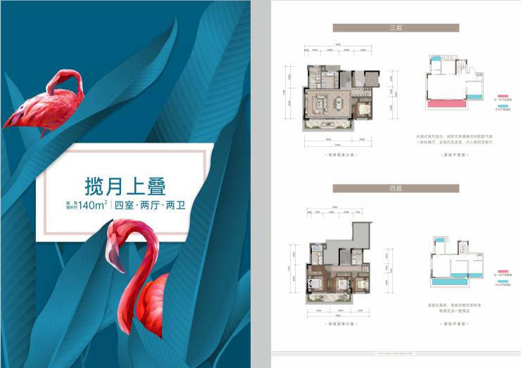 叠拼产品详情:1、4F悠云A(下叠) 建面约193㎡ 四室两厅三卫(赠送面积约:190-330㎡)