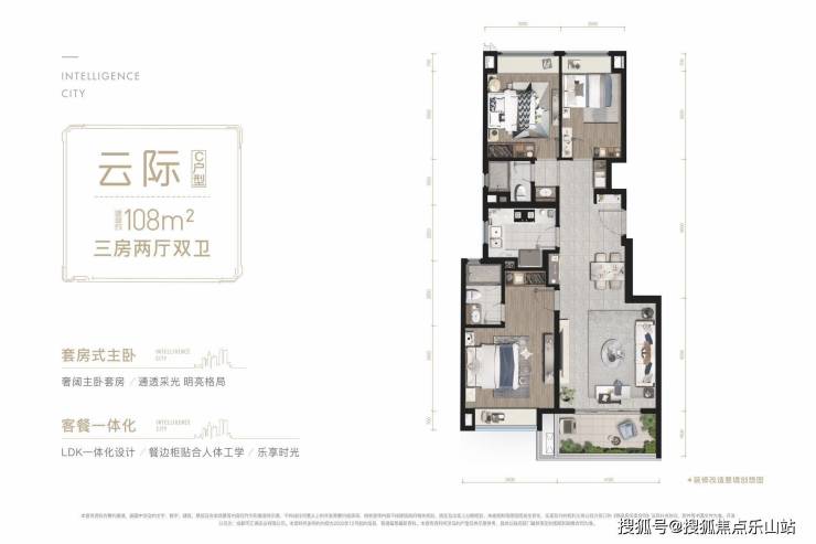 108㎡:三房两厅,适合刚需及首改家庭,空间紧凑实用。
