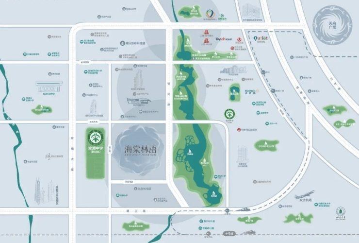 教育:棠湖中学新校区(省重点)与项目一街之隔,成都芯谷实验学校(9年制)距离约1.2公里。