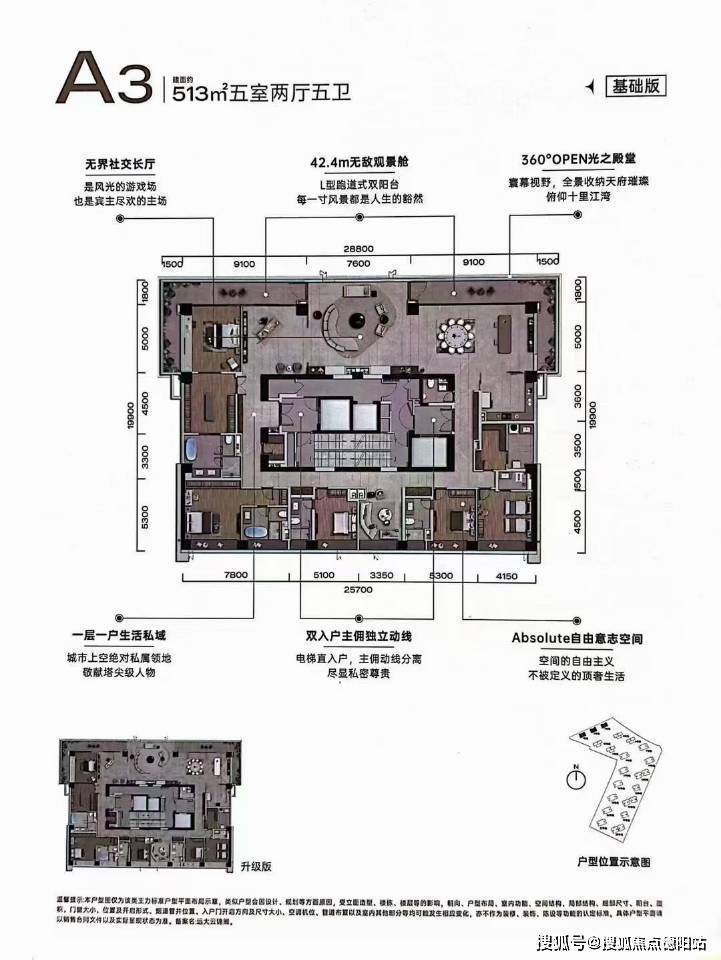 顶楼的部分还有超500㎡的3T1户和700㎡的3T2户产品,妥妥的豪宅大平层。