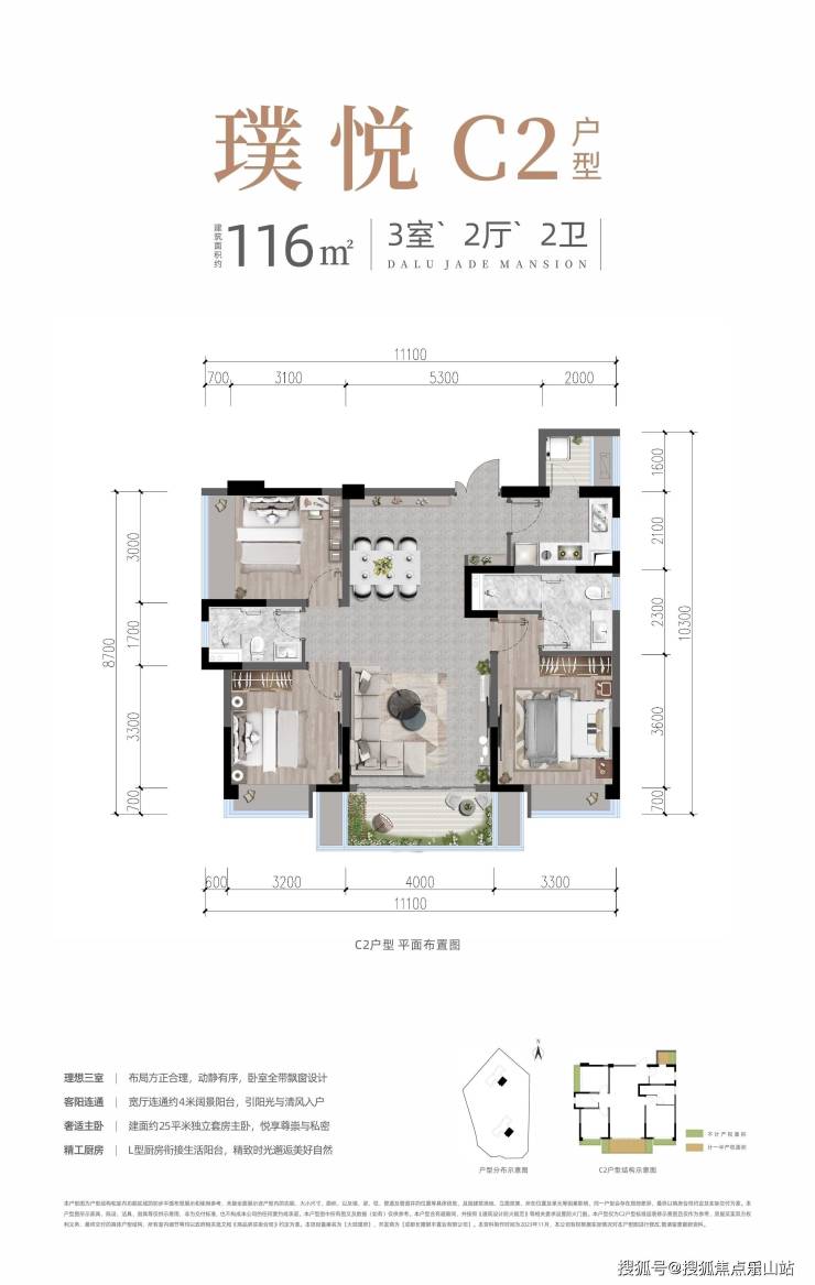 116㎡三房:方正通透,主卧套房设计,南向景观面最大化。