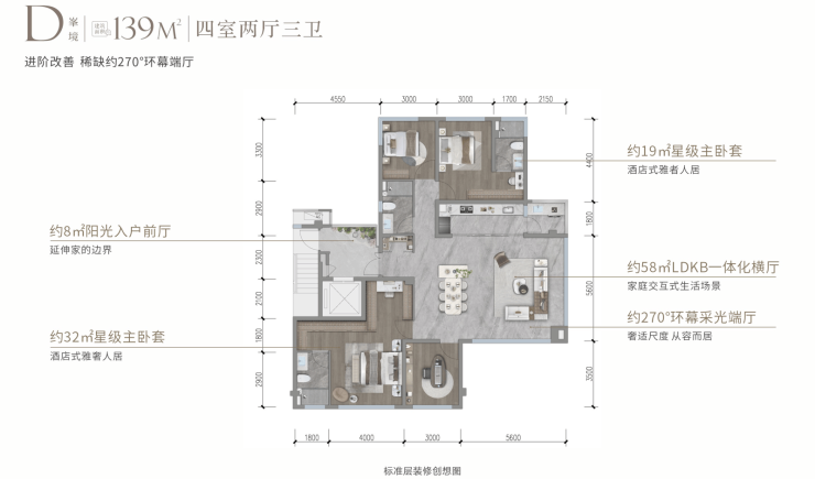 小高层:建面约100㎡套三双卫,建面约115㎡套四双卫,建面约125㎡/139㎡套四三卫