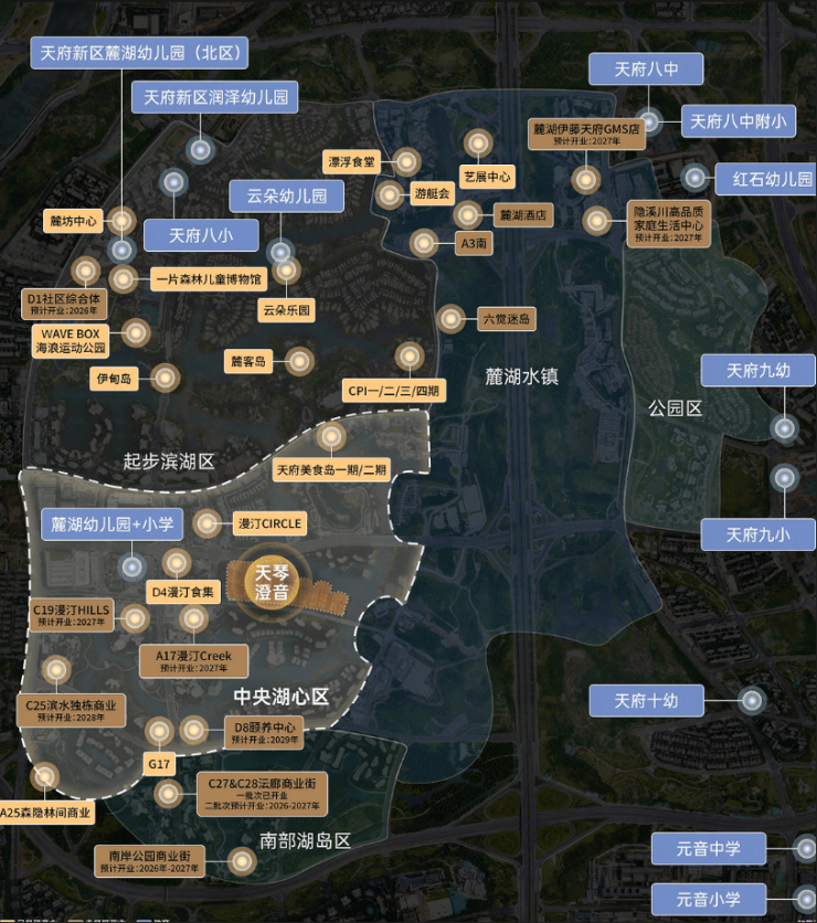 天琴澄音位于麓湖中央湖心区,这里是麓湖目前最值得买入的区域——既比起步区产品更新、品质更优,又比湖岛区配套更成熟、更便捷。项目地处麓湖最核心产品的中轴线,被黑系神兽组团环绕,与麓湖最顶尖的产品为邻,本身就是一块经过市场验证的稀缺领地,地段的稀缺性,也决定了其长远的保值与增值能力。