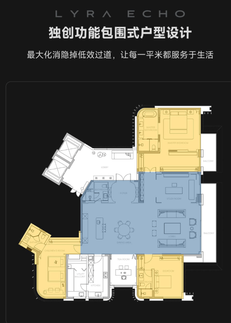 天琴澄音的户型设计堪称“实用与颜值并重”,打破了麓湖过往“非标设计”的惯性,以方正布局、高得房率、定制化空间,满足不同高端家庭的居住需求,主力户型涵盖260㎡、286㎡、350㎡精装大平层,以及480-625㎡临湖别墅,每一款都兼具尺度感与实用性。