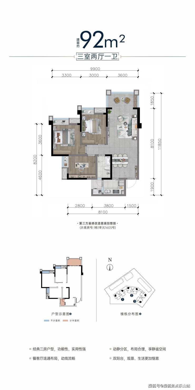 经典套三户型,功能性、实用性强;动静分区,布局合理,享静谧空间