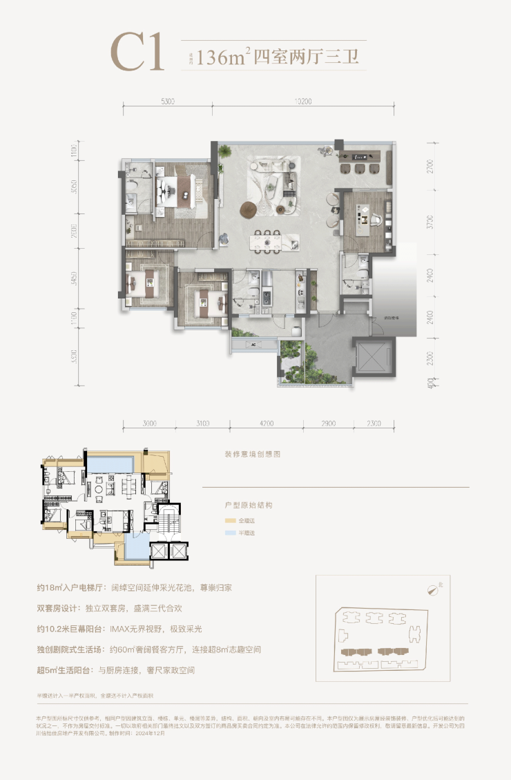 围合式布局,最大约170米楼间距;超大窗墙比、艺术化立面设计,塑造城市封面