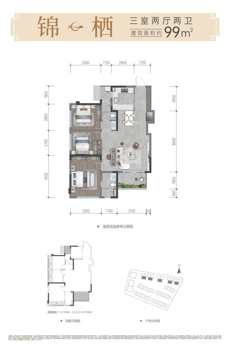 ✅锦栖丨建面约99㎡灵动舒居丨三室两厅两卫
