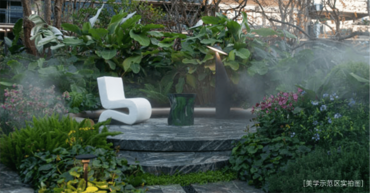 产品主张2:景观花园化都市摩登花园,沉浸式交互园景秉承“引画入园 以园传意”的造景手法,在南北双园中构筑7大摩登主题园境,从社区大门环岛水景,到儿童乐园、艺术水院,层层递景,营造可互动、可参与的沉浸式园景,尽享松弛惬意生活。