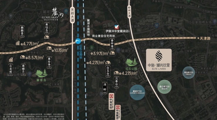 项目距金融城约15公里(天府大道车程),科学城约8公里,适合城南高净值人群。周边3大TOD(麓湖东、昌公堰、青岛路)规划中,未来轨道交通覆盖力进一步提升。