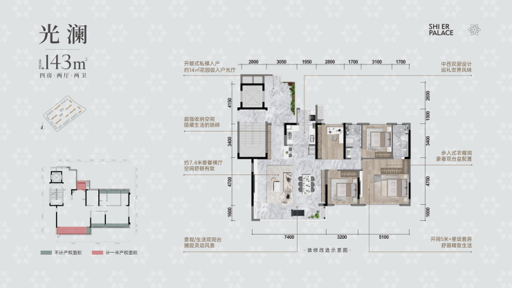 ◎ 光澜 建筑面积约143㎡ 四房两厅两卫
