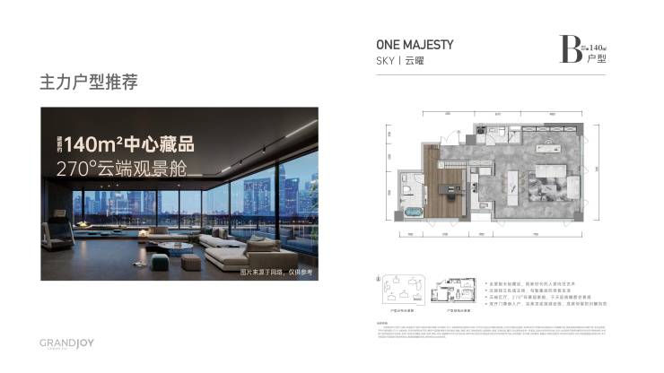 汲取全球地标建筑的立面营造理念,采用米白色、深灰色的颜色打造现代轻奢的高级灰风格,天际光幕外立面,两层挑空入户大堂使用石材、格栅、铝板打造,户内断桥铝LOW-E玻璃和玻璃栏板打造类公建化立面,亮相即是桐梓林颜值地标。