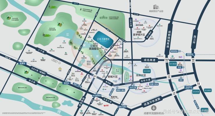 高速/快速路:成温邛高速、光华大道、凤溪大道,直达市中心。