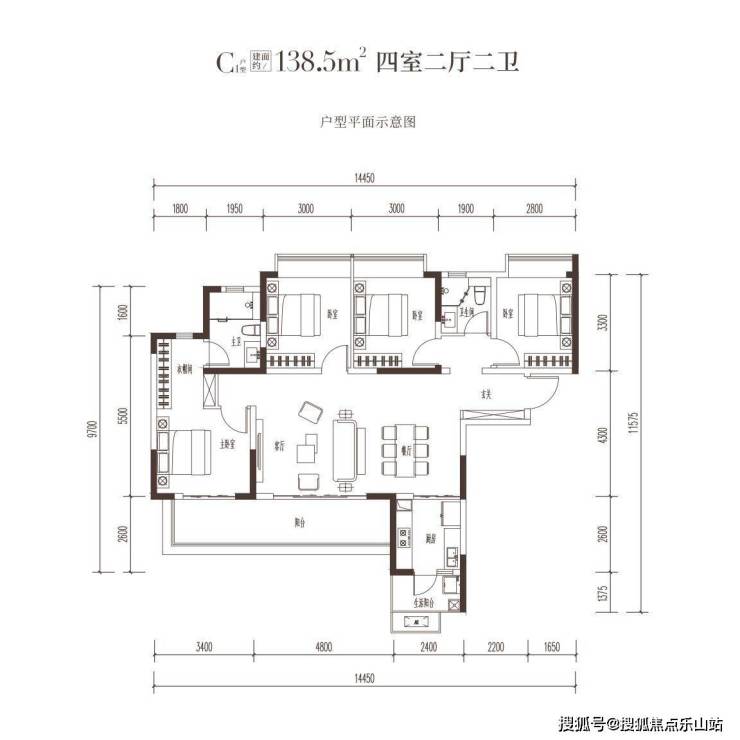 138㎡:四房横厅,南北通透,兼顾功能与舒适度。